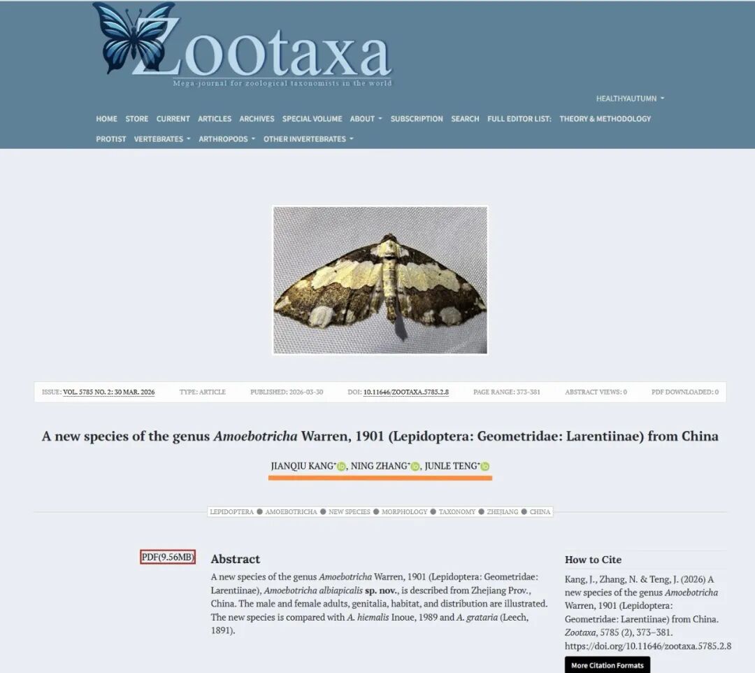 该研究成果于2026年3月30日在国际动物分类学领域权威期刊《Zootaxa》上正式发表。