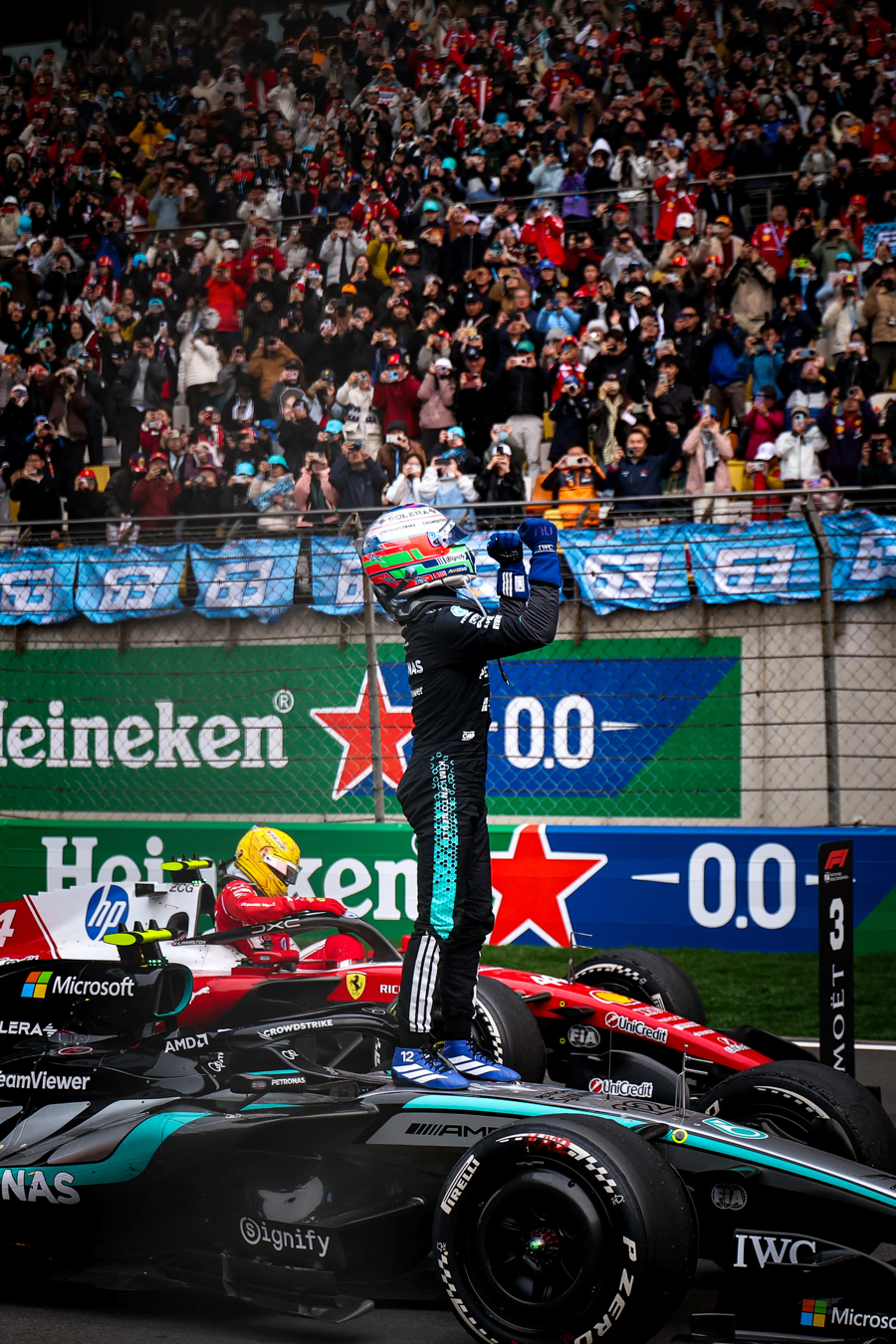 冲线后,这位年轻的天才车手难掩激动之情,在全场车迷的欢呼声中泪洒赛场。这一充满温情与竞技魅力的热血瞬间,也为本届F1中国大奖赛画上了圆满的句号。
