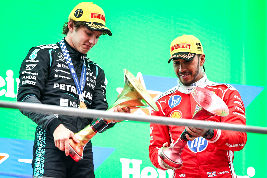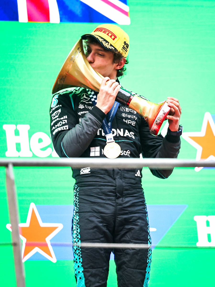 在这场充满激情与速度的较量中,梅赛德斯车队19岁的意大利小将基米·安东内利(Kimi Antonelli)顶住压力,率先冲过终点线,成功捧起职业生涯首座F1分站赛冠军奖杯。凭借这场胜利,安东内利正式成为F1历史上第二年轻的分站冠军,在上海国际赛车场刻下了属于自己的历史印记。